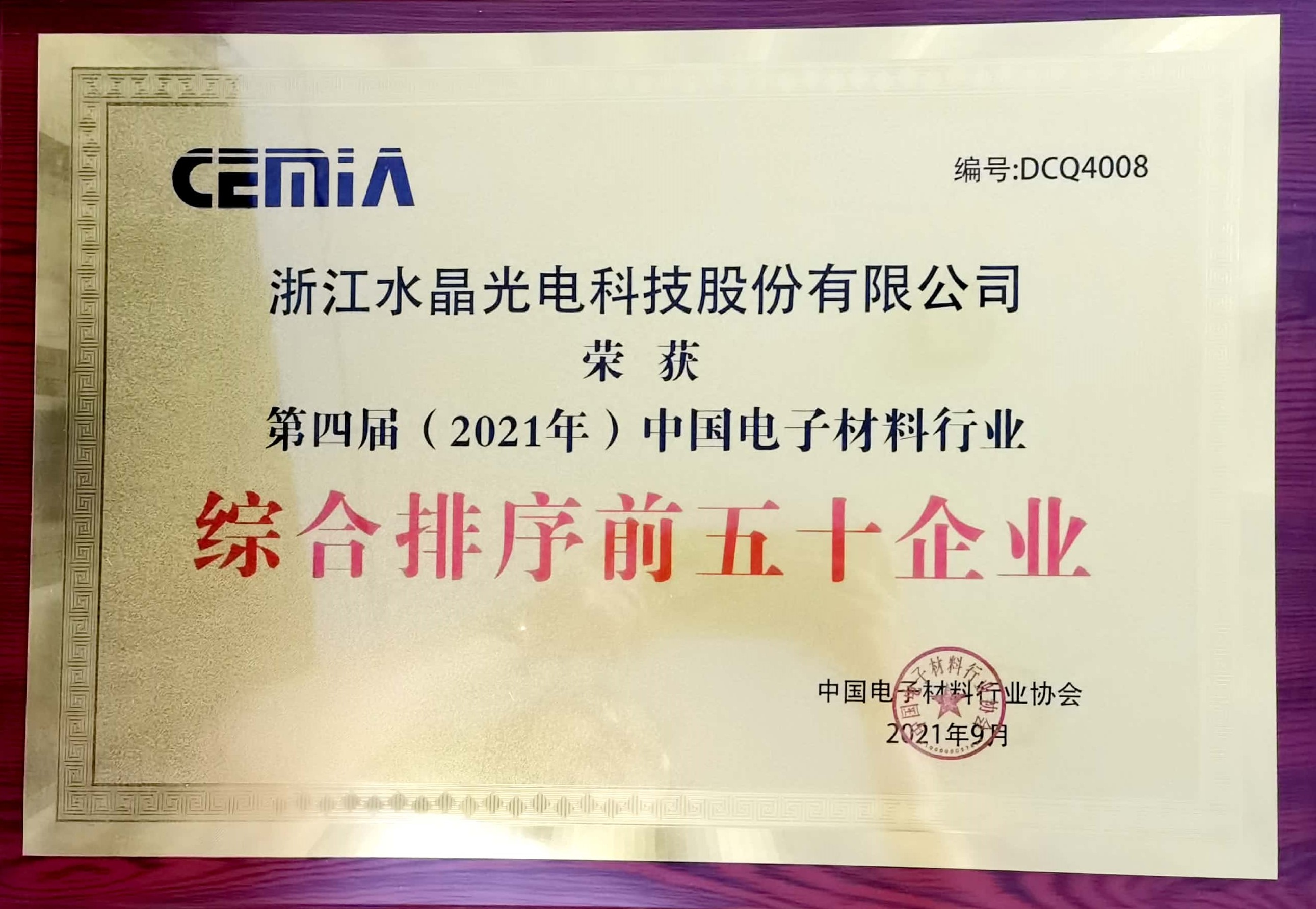 第四屆(2021年)中國電子材料行業協會綜合排序前50企業