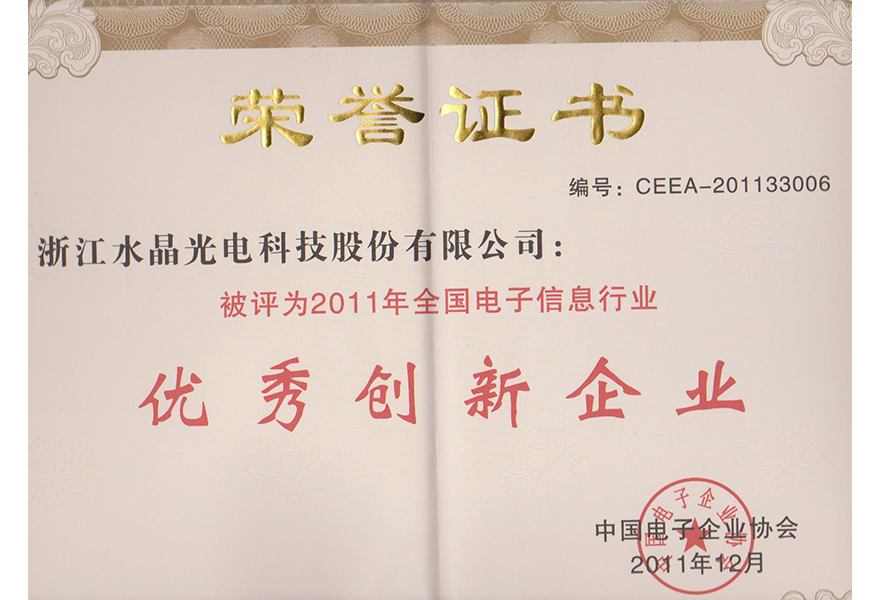 11.A-87水晶光電被評為2011年全國電子信息行業優秀創新企業201112