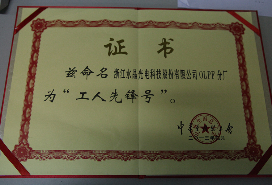11.B-93 水晶光電OLPF分廠榮獲“全國工人先鋒號”稱號——中華全國總工會