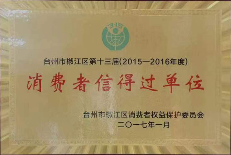 2015-2016年度臺州市椒江區(qū)第十三屆消費(fèi)者信得過單位