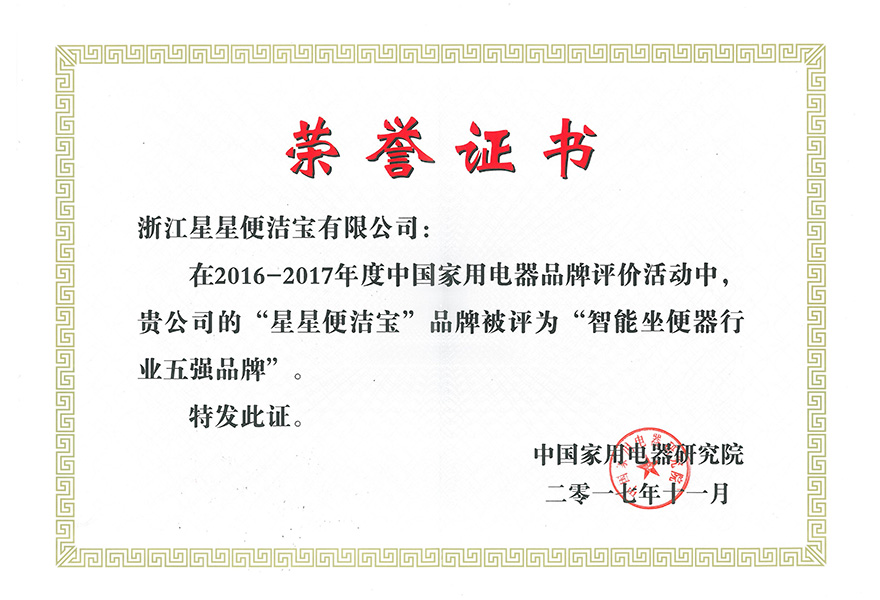 浙江星星便潔寶有限公司成立于1998年,歷經(jīng)20余年的發(fā)展,現(xiàn)已成為國內(nèi)技術水平領先、產(chǎn)能規(guī)模居前,以自主品牌為主的智能馬桶龍頭企業(yè),參與起草了國家、行業(yè)、地方的三大產(chǎn)品標準,獲“全國感應潔具十強企業(yè)”、智能馬桶“浙江制造”首張認證、“浙江省知名商號”、“浙江省名牌產(chǎn)品”、“紅棉設計獎”、“臺州市政府質(zhì)量獎”、“紅頂獎提名獎”等榮譽稱號,產(chǎn)品成功入選G20西湖國賓館、中央黨校。