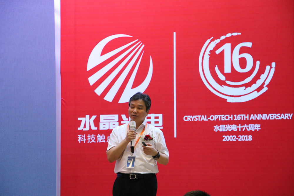 2018年8月2日,水晶光電迎來了16周年生日,當天上午,他們在綜合樓三樓舉行2018年忠誠員工入譜表彰儀式暨水晶商學院講座及“晶才計劃”啟動儀式。董事長林敏,董事、副總經(jīng)理盛永江等領(lǐng)導(dǎo)班子以及公司各職能中心和事業(yè)部、分子公司的領(lǐng)導(dǎo)和員工代表參加了此次活動。活動期間,董事長林敏作了題為《水晶二次發(fā)展新格局》的專題講座,深度闡述了公司未來發(fā)展思路,為公司的下一階段發(fā)展指明了更加清晰的方向。