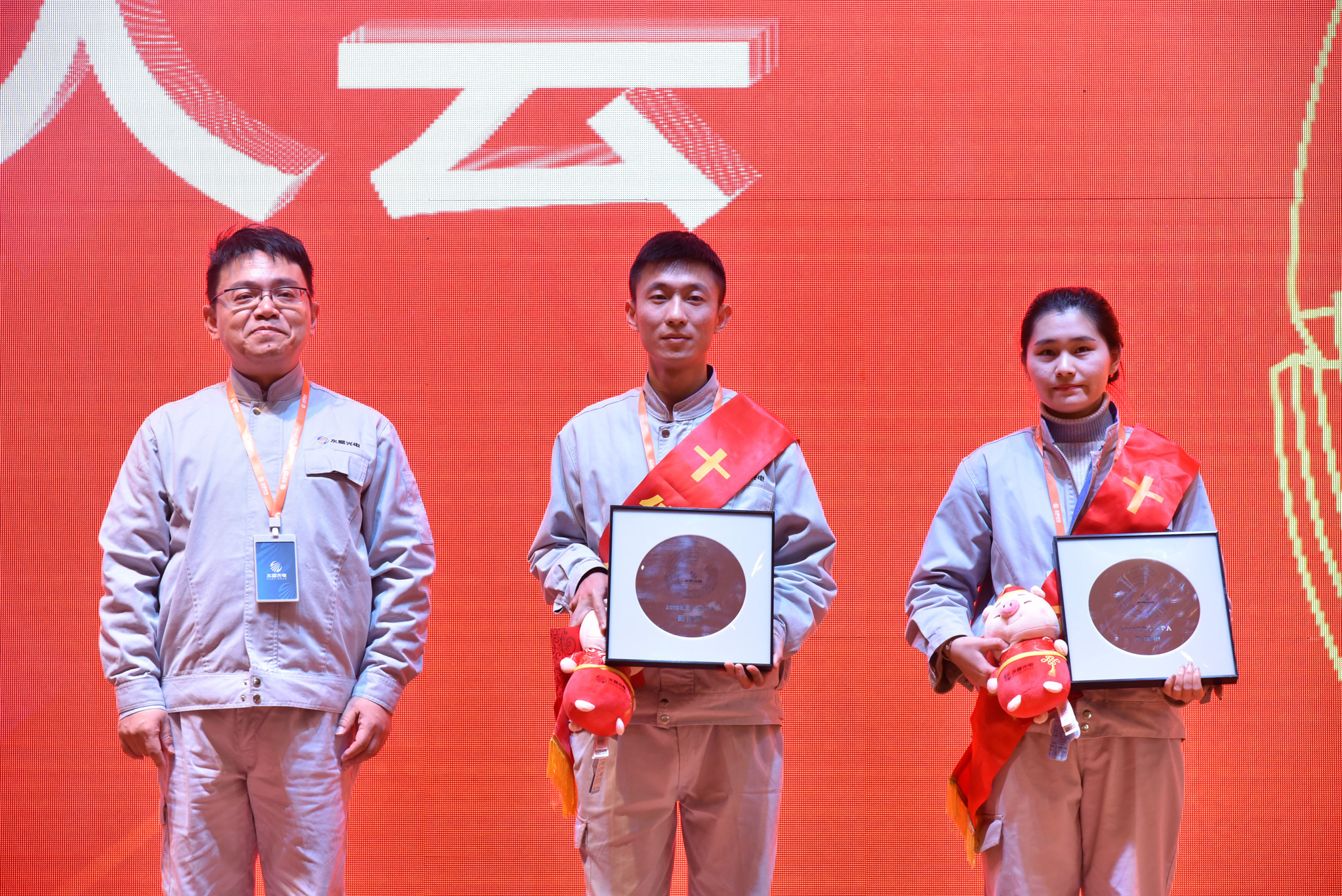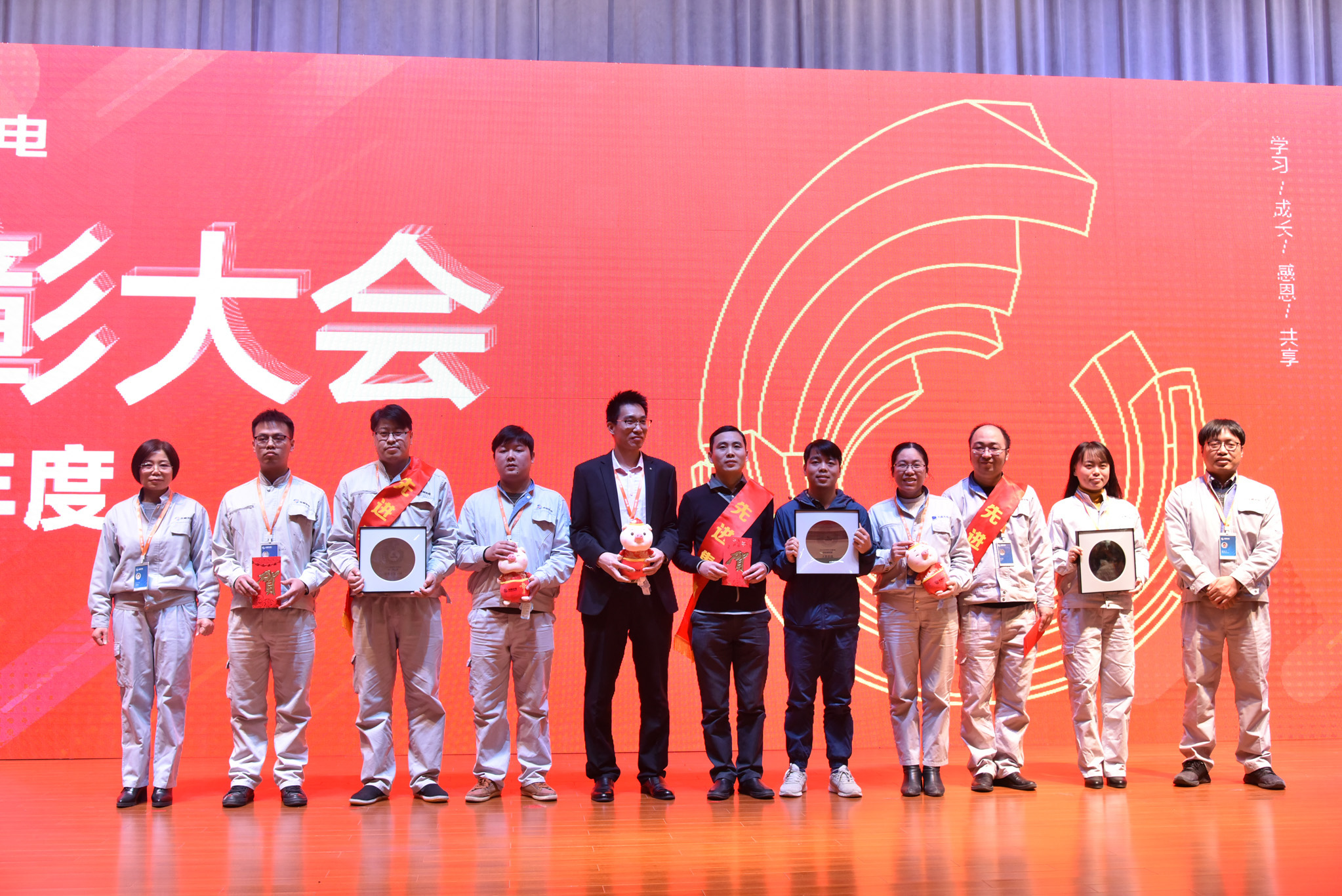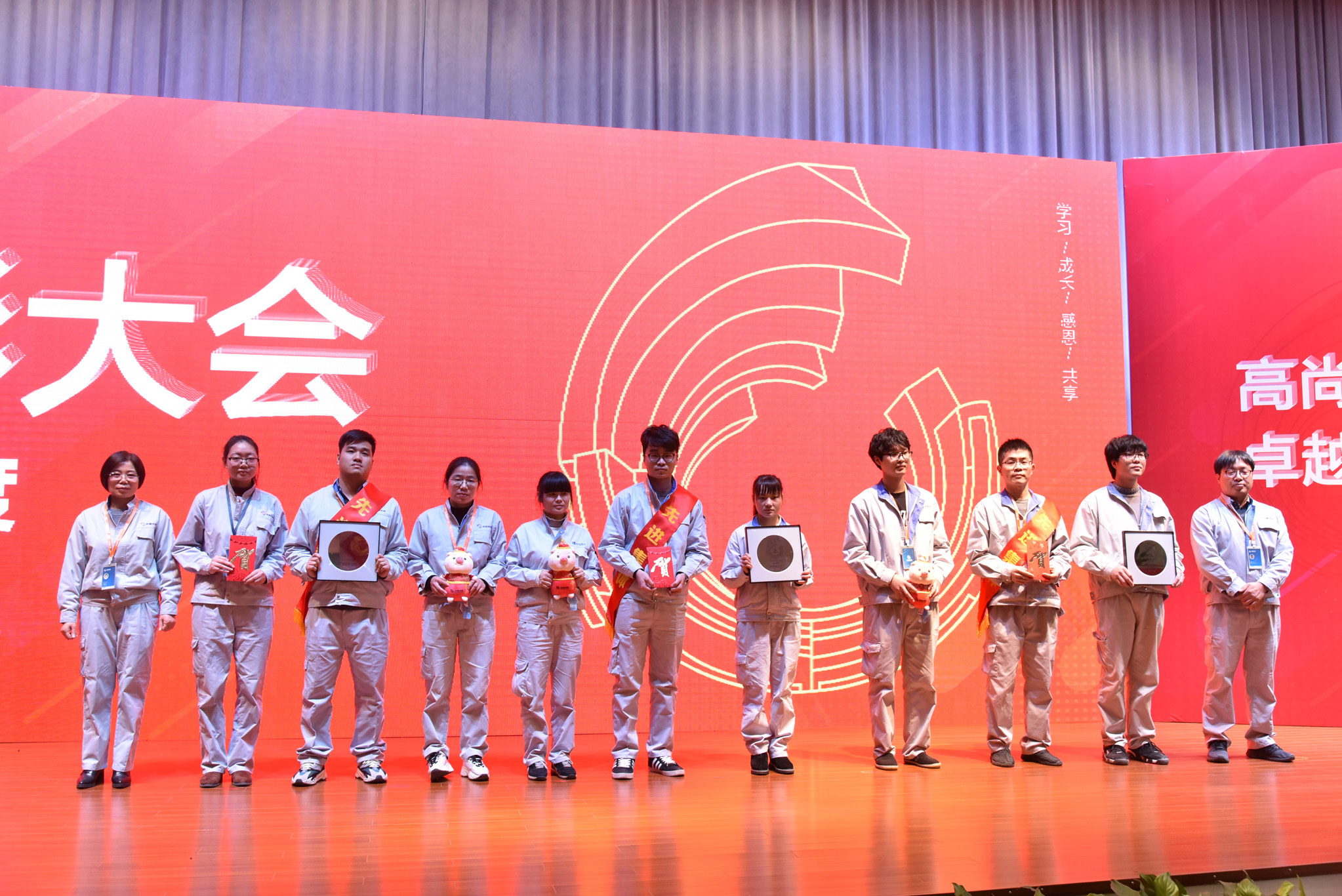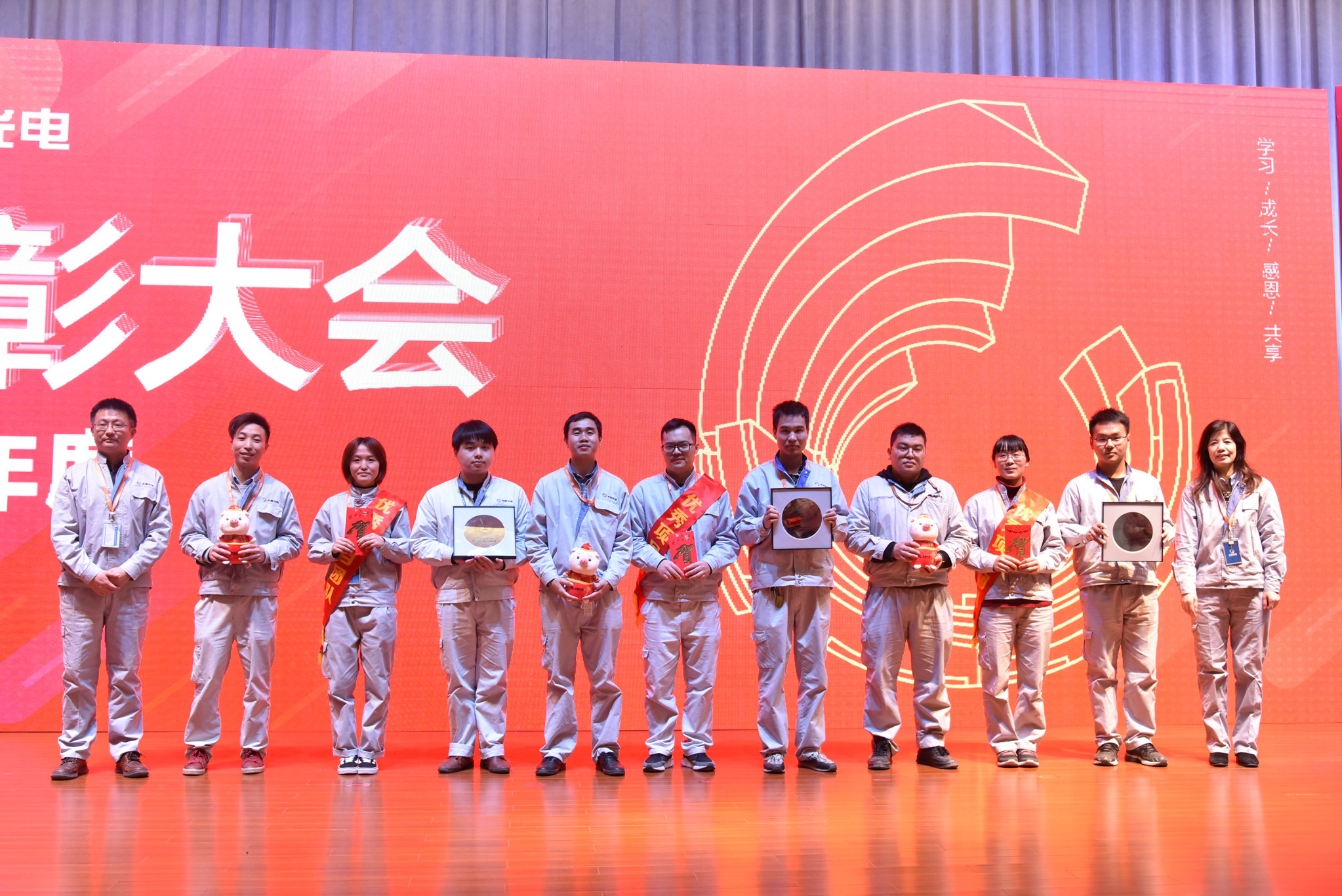 這一年,公司也涌現出了許多優秀的員工和團隊,他們愛崗敬業、技能精湛、勤精誠樸、攻堅克難,在平凡的崗位上做出了不平凡的成績。會上,公司對獲得明日之星、優秀輔導員、操作能手、班組骨干、技術尖兵、服務楷模、銷售明星、管理精英9個單項獎的48名優秀員工進行表彰,并為他們頒發了獎牌、獎金和吉祥物。