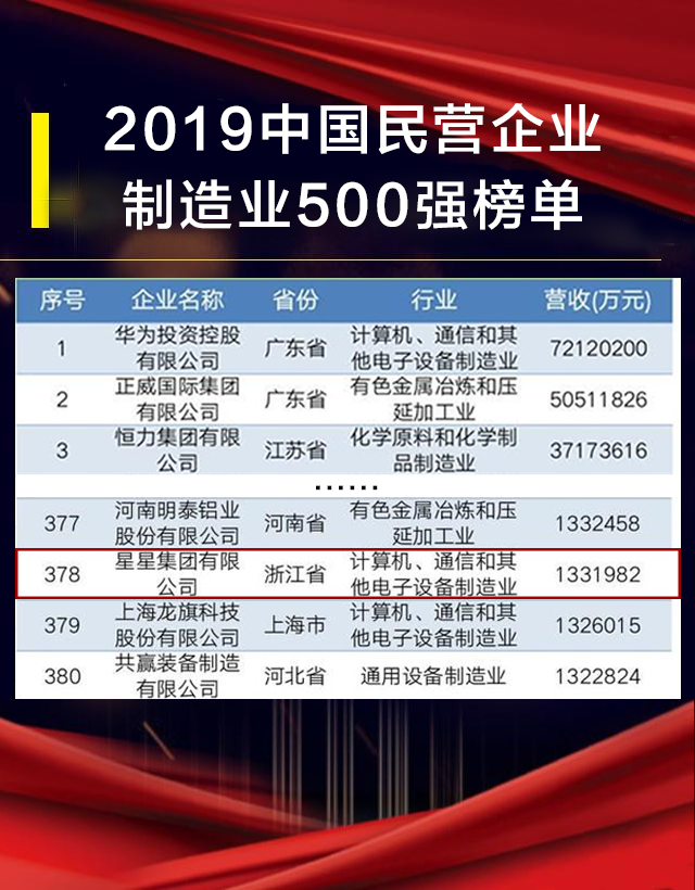 8月22日,全國工商聯在青海省西寧市發布2019中國民營企業制造業500強榜單,星星集團榜上有名。