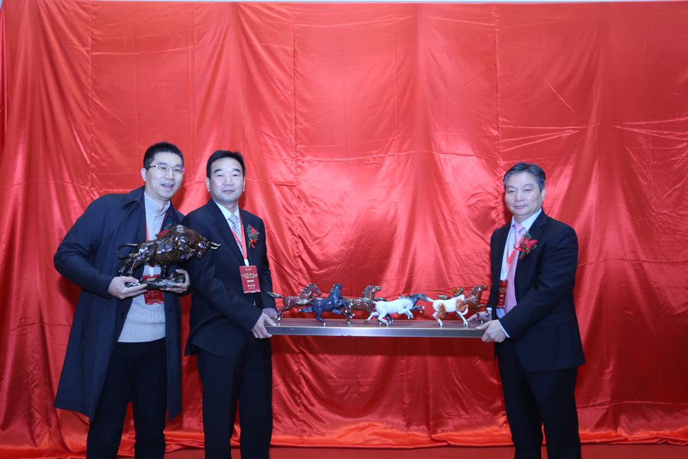 超出議程之外的是,浙大聯(lián)創(chuàng)周影總即興登臺發(fā)言并送來意外之喜。周影先生說:“在與水晶光電相識相知、相親相愛的六年里,每一天都非常深刻地認識到水晶光電為了中國的光電事業(yè)、新型顯示事業(yè),心甘情愿做牛做馬。”于是,他贈送“春牛耕地”和“駿馬奔騰” 兩組銅雕,祝愿水晶意氣風(fēng)發(fā)、一馬平川。